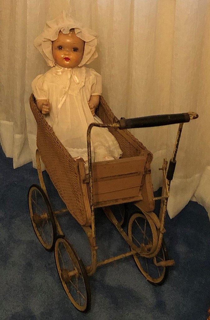 Going through all of Mom and Dad’s things generally delivered expected results, i.e., I found what I expected to find. But sometimes, my efforts yielded priceless treasures that elicited delighted exclamations – the tassel from Mom’s high school graduation cap, a photo of my grandfather in his field with his mules and plow,  the carriage for the baby doll Mom received for her tenth Christmas.