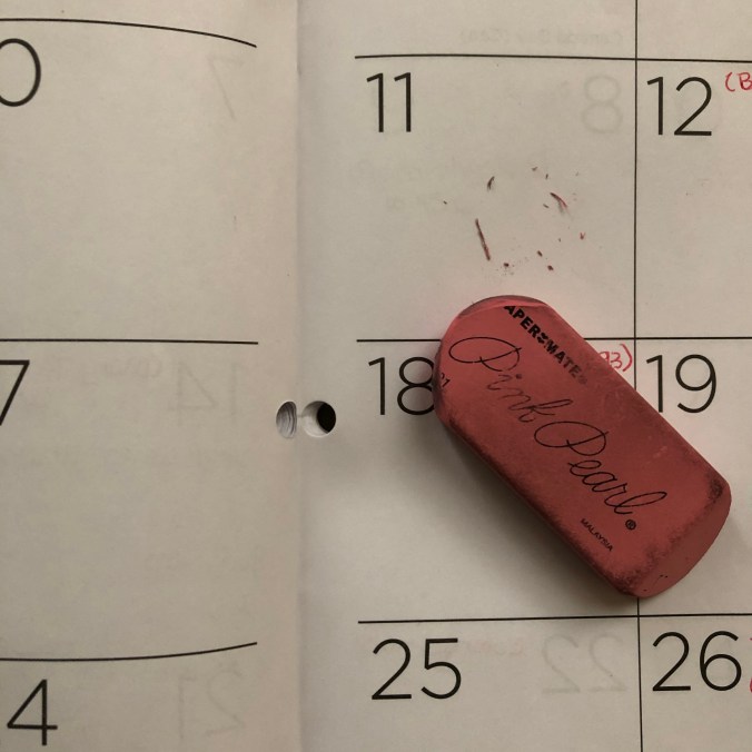 I never would have imagined all the times I’d reach for my trusty Pink Pearl eraser the past several weeks. One by one, activities came off my calendar – appointments of various kinds, lunch with friends, 5k races, garden tours, even Grammie days[1] – disappearing into so much eraser stubble. The avalanche of cancellations gradually turned into a trickle, sparking tentative hope the few remaining events, further in the future, could be salvaged.