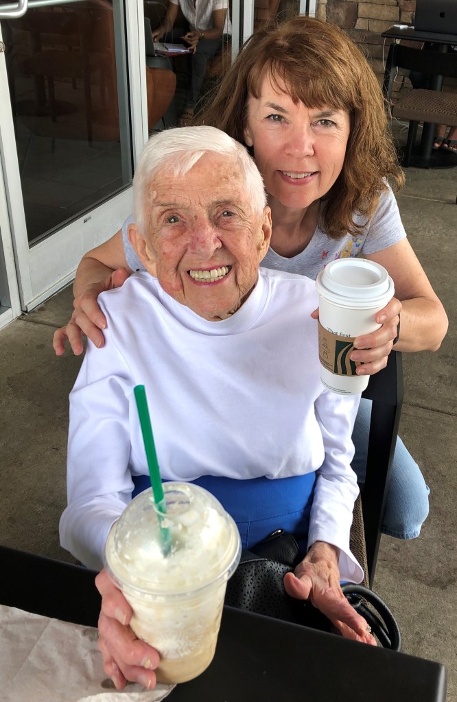 It was no different for Mom. Though her spirit and determination were as strong as ever, her physical self declined. Relinquishing her driver’s license was the most significant single blow as it made her dependent on others for transportation. She lamented imposing on me whenever I took her to a medical appointment regardless of how many times I tried to assure her it wasn’t a bother. (Besides, we’d often find a way to fit in a stop at Starbucks for our favorite beverages!)