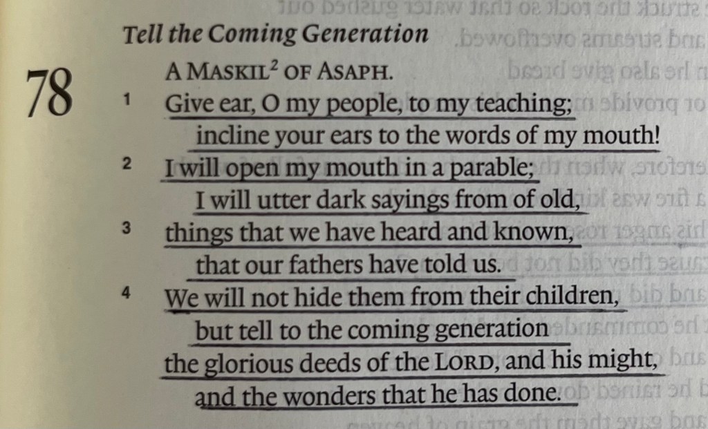 That’s a Gulf song. This statement isn’t advice, but I include it because it alludes to my heritage of faith. Mom grew up in the tiny town of Gulf, NC, where she attended a small Presbyterian church established in the 1800s. When the strains of a familiar hymn from her childhood would begin to play at our current church, Mom’s face would brighten, and one of us would usually lean toward the other and whisper, “That’s a Gulf song.” Occasionally, I’ll whisper the same to my granddaughter Lyla, who has visited the small church, understands the connection, and smiles knowingly at my statement. I don’t know how many generations my heritage of faith encompasses, but I know there are at least two behind me and two in front. I pray that the legacy of faith will be passed continually from generation to generation until Christ returns (Deuteronomy 6:4-9).