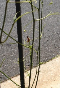 I examined the vine every morning when I went out to collect the newspaper and every evening when I checked for mail. No caterpillars. Then one day, I saw a tiny caterpillar in the clutches of a wasp. What did I do? I turned to Google, of course! “Do wasps eat caterpillars?” Unfortunately, they do.